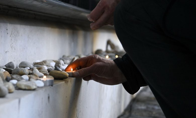 A megemlékezés végén a résztvevők mécseseket és köveket helyeztek el az áldozatok emlékfalánál.