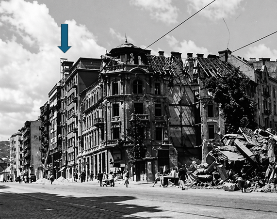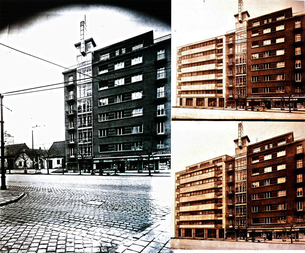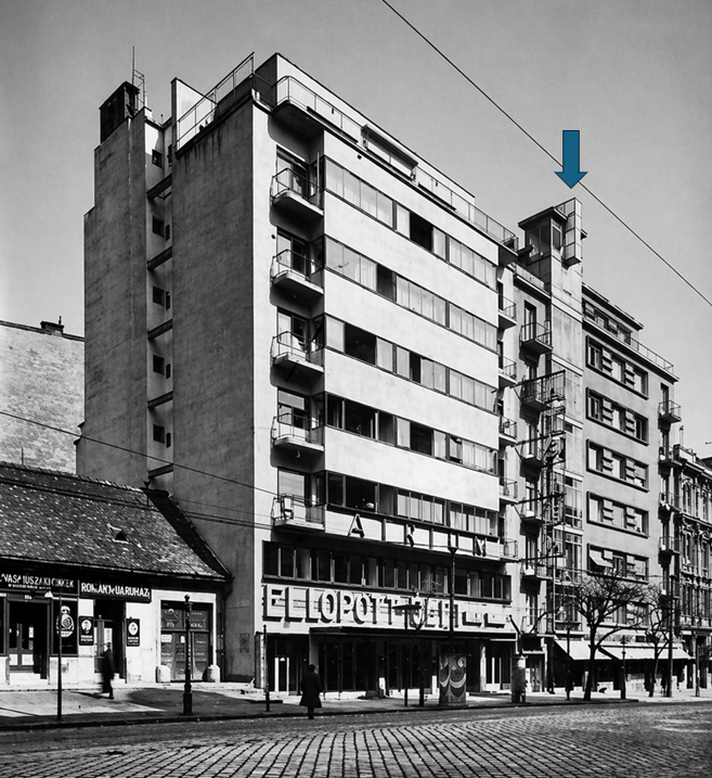 Ezen a fényképen látható, hogy a Paulheim-bérház manzárdja fölé emelkedő üvegtorony magasságából három tagozatot visszabontottak – már a háború előtt. Forrás: Pinterest