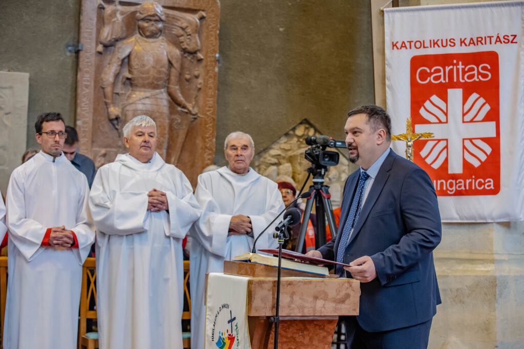 Ezt követően Lőrincz Pál atya, az országos központ lelki igazgatója osztotta meg gondolatait, XIV. Leó pápa Dilexi Te, ’Szerettelek téged’ kezdetű első pápai buzdításából kiindulva: „Krisztus szeretete és a szegényekről való gondoskodás parancsa között elválaszthatatlan, szoros kapcsolat van.” Az evangéliumi példák – a Jézusra drága olajat öntő asszony gesztusa, Szent Erzsébet leprással való találkozása és Szent Márton köpenyének megosztása – mind ezt az időtlen tanítást erősítik. Az elmélkedés rámutatott, hogy a rászorulók felé forduló szeretetben magával Krisztussal találkozunk. A Karitász szolgálata ezért nem csupán emberi jószívűség, hanem mély lelki hivatás.