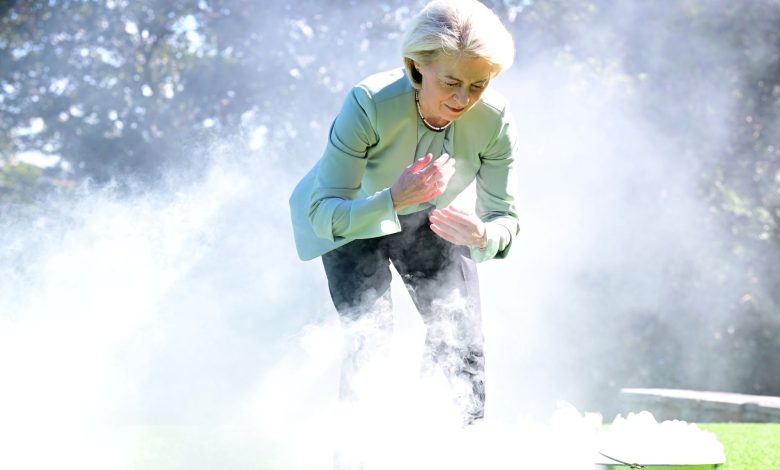 Vezetőkép: Ursula von der Leyen, az Európai Bizottság elnöke hagyományos füstölési szertartáson vesz részt a főkormányzó sydneyi rezidenciának, az Admiralitás Házának kertjében 2026. március 23-án. Fotó: MTI/EPA/AAP/Dean Lewins